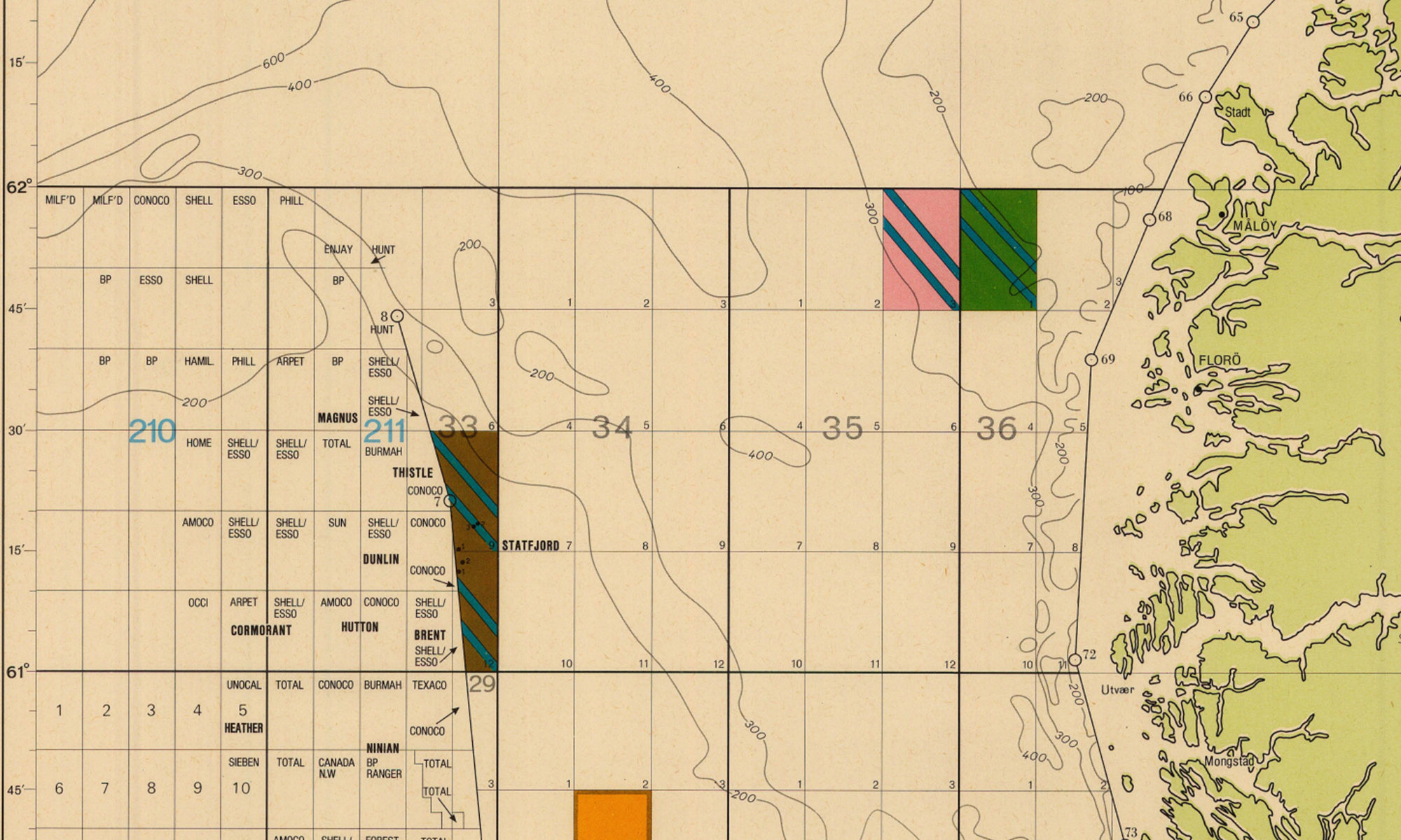 Blocks were awarded at the discretion of the UK’s Ministry of Power (and successor bodies) on the basis of the programme of work submitted. The third licensing round was launched in 1969, and on 8th June 1970, licence number P104 formally allocated block 211/19 and 211/25 to Conoco.
