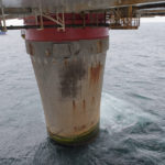 It transpired that there were two cracks, each 20 centimetres long, in the concrete between one “star” cell and a storage cell. The GBS was taking in 15 000 litres of water per hour or 20 buckets a minute.[REMOVE]Fotnote: Stavanger Aftenblad, 14 September 1976. “20 bøtter i minuttet”. But the structure was never in any danger of tipping over or sinking. The pumps installed in the GBS were capable of discharging a million litres per hour, and had no problem controlling the water intrusion. Without the pumps, the GBS would have sunk 60-70 centimetres per day because of the extra displacement caused by the water.
