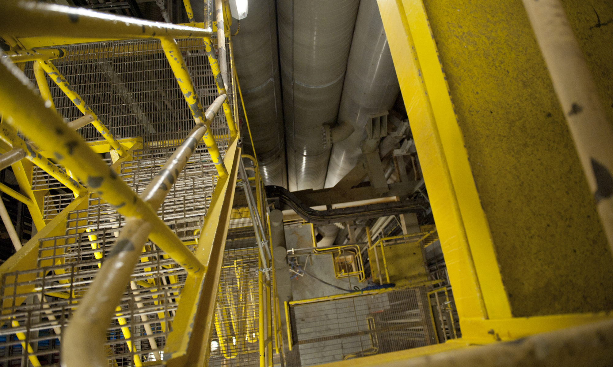 Dette bildet er fra et vaktskifte, hvor det ofte ble folksomt i trappene mellom etasjene. Foto: Rein Øverland/Norsk Oljemuseum