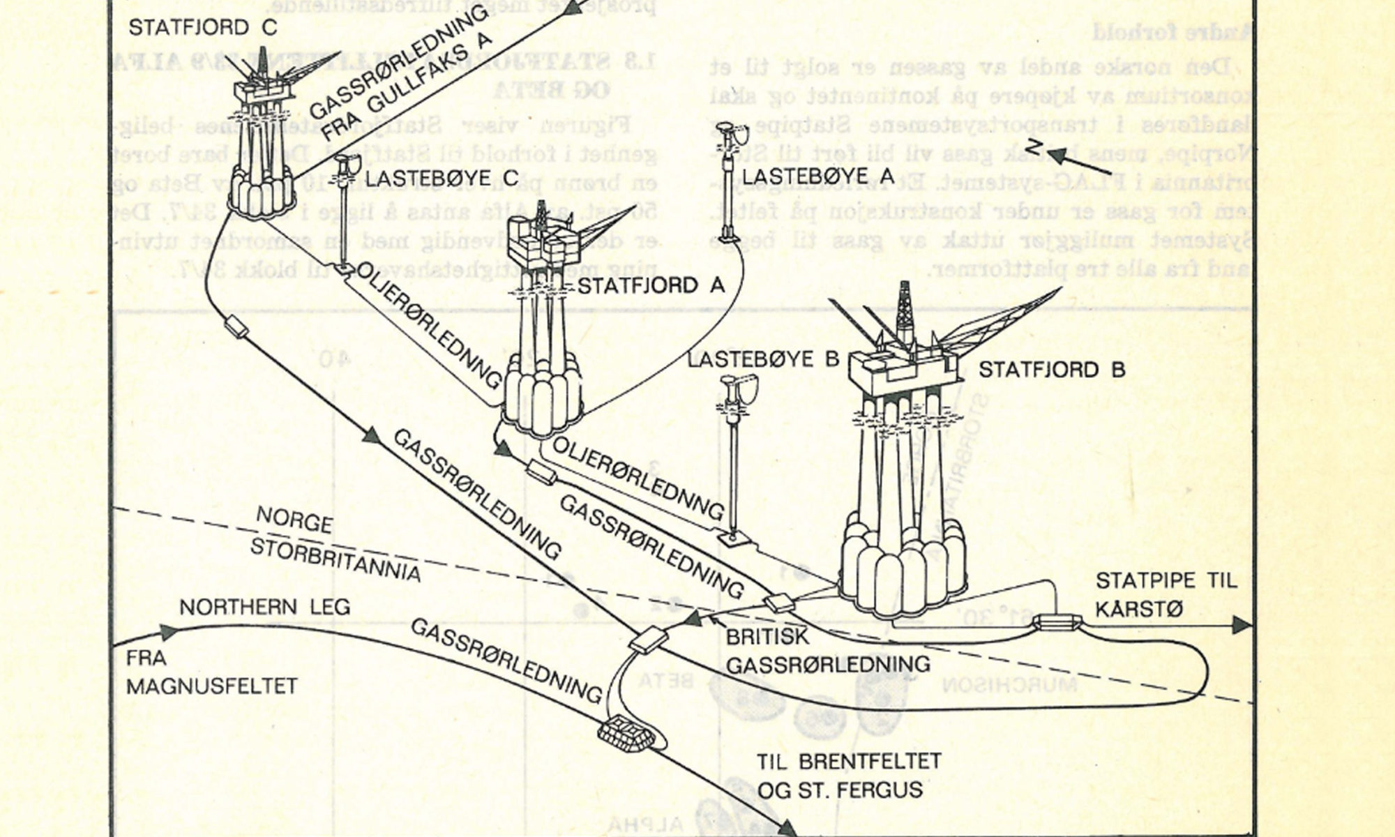 I forbindelse med salget av gassen fra Statfjord ble det nødvendig å knytte plattformene sammen med gassrør, slik at det ble mulig å transportere gassen i Statpipe. Det går også oljeledninger mellom plattformene på Statfjordfeltet, men mens oljerørene var en del av feltutbyggingen, var ikke gassrørene det.