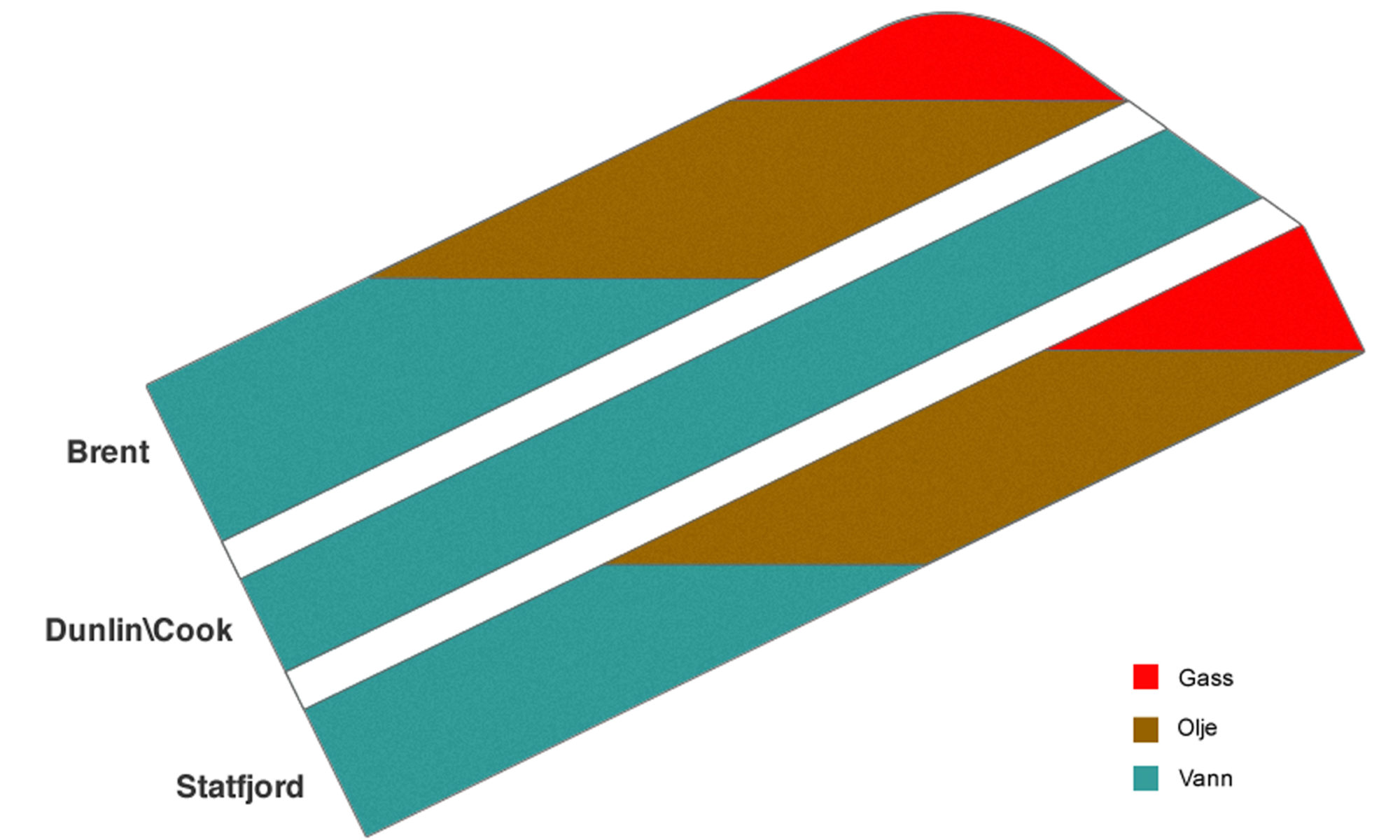 I Statfjordfeltet er det tre hovedreservoarer: Brent, Dunlin og Statfjord.