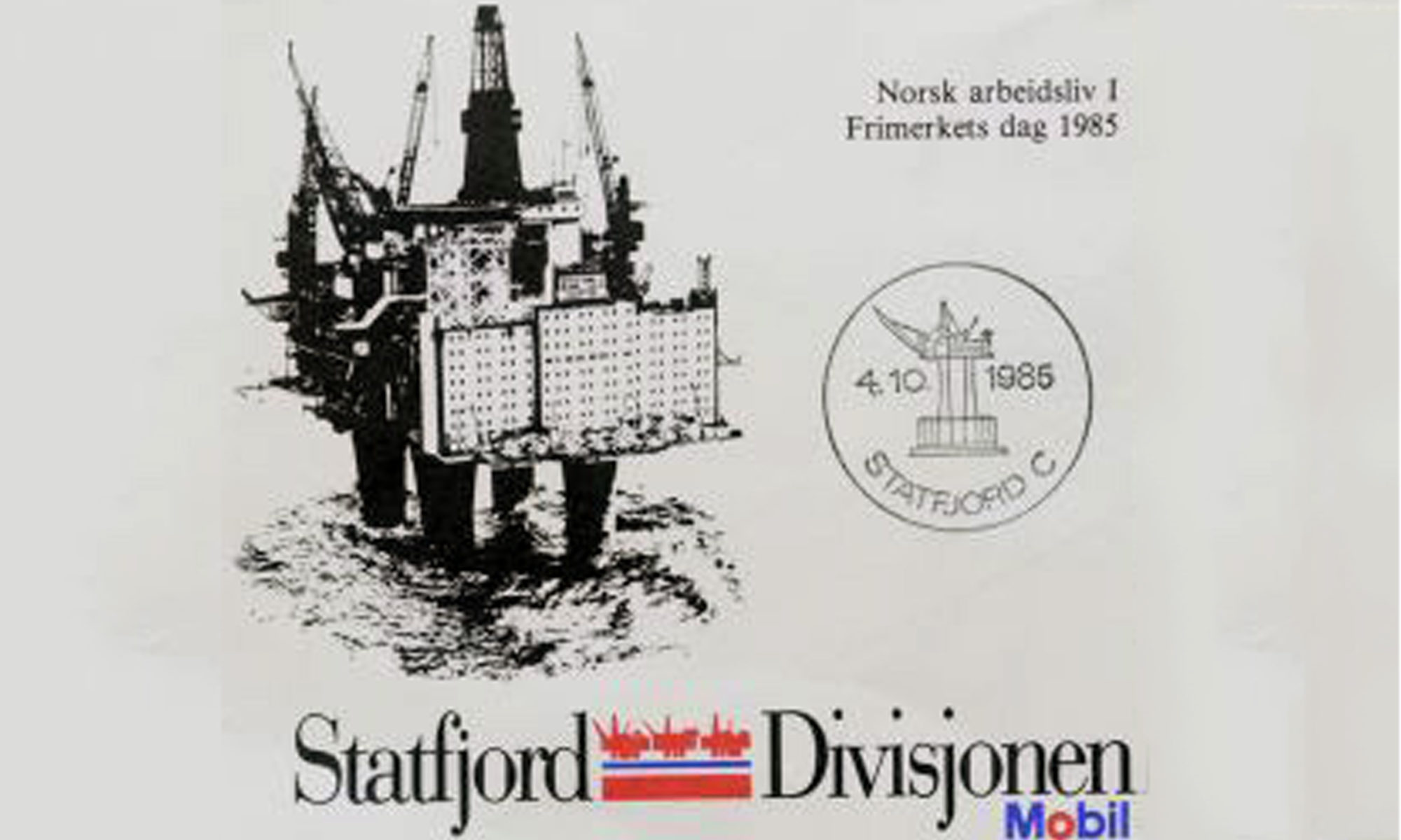 Motivene var hentet fra oljeindustrien; Ekofisksenteret, riggen Treasure Scout og supplybåten «Odin Viking» på Tromsøflaket, boredekk på Neptuno Nordraug på Trænabanken og utslepet av Statfjord C. Miniatyrarket «Norsk Arbeidsliv 1» var en nyskapning og opplaget var på en million. Kunstneren var Leif F. Anisdahl. Frimerket av Statfjord C fikk nr. 978 i Norgeskatalogen for frimerker. Frimerkets dag ble markert på Statfjord C med åpent postkontor og salg av «eget» frimerke.