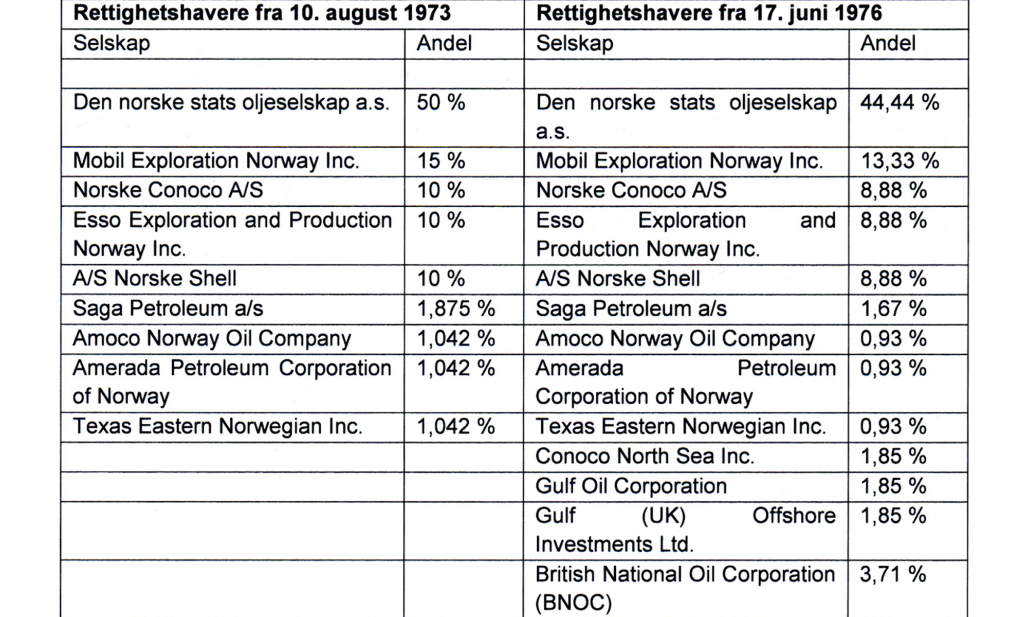 — Rettighetshavernes andel i produksjonslisens 037 (Statfjordfeltet).